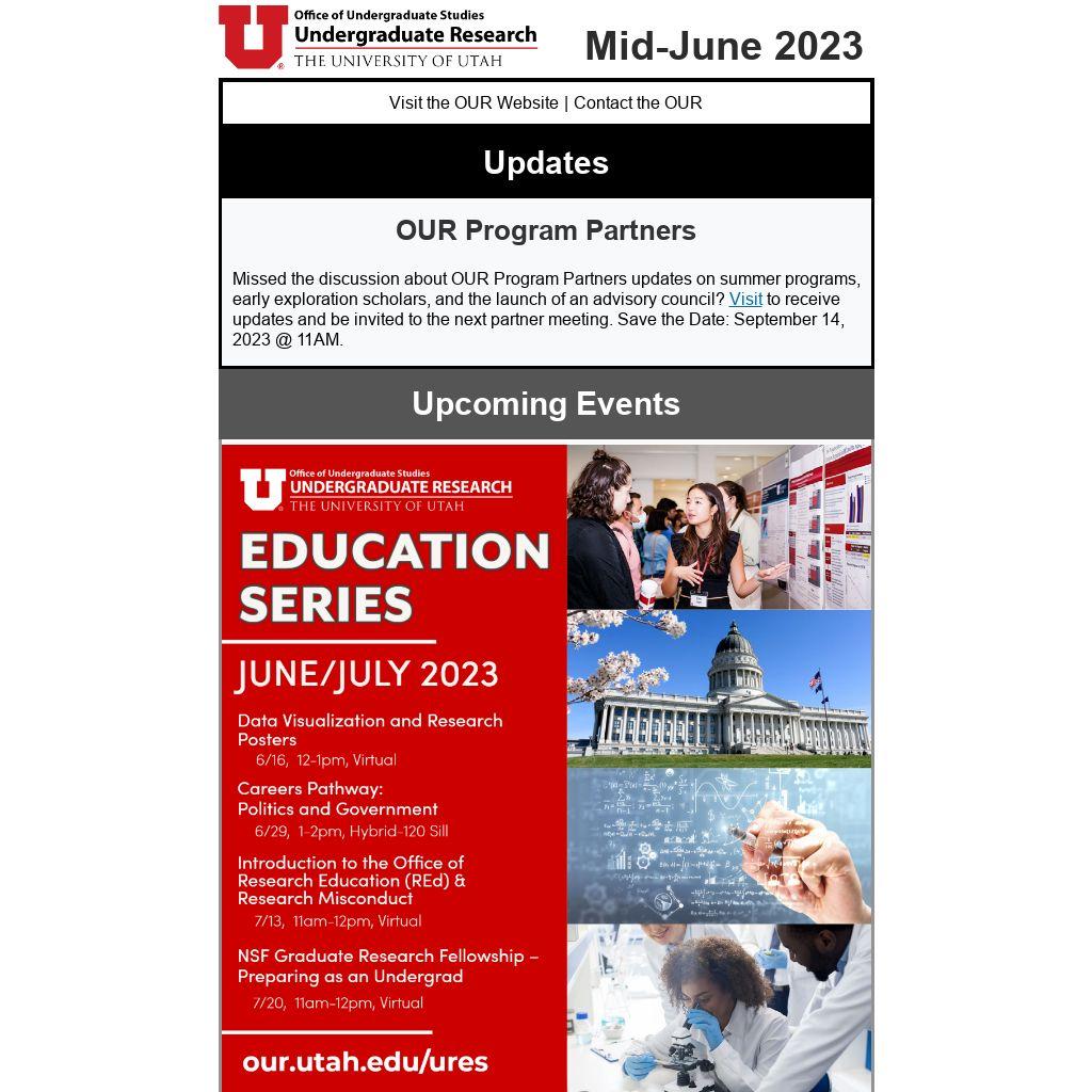 Missed the discussion about OUR Program Partners updates on summer programs, early exploration scholars, and the launch of an advisory council? Visit to receive updates and be invited to the next partner meeting. Save the Date: September 14, 2023 @ 11AM.