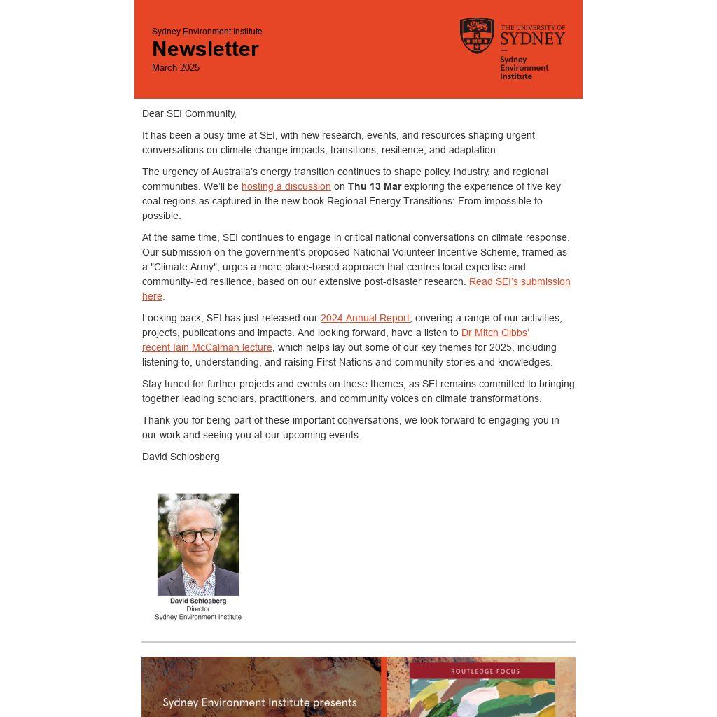 Looking back, SEI has just released our 2024 Annual Report, covering a range of our activities, projects, publications and impacts. And looking forward, have a listen to Dr Mitch Gibbs’ recent Iain McCalman lecture, which helps lay out some of our key themes for 2025, including listening to, understanding, and raising First Nations and community stories and knowledges.