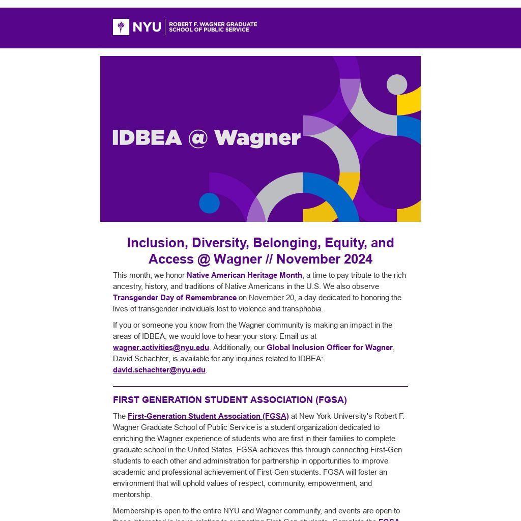 If you or someone you know from the Wagner community is making an impact in the areas of IDBEA, we would love to hear your story. Email us at