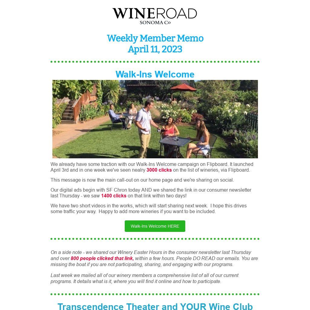On a side note - we shared our Winery Easter Hours in the consumer newsletter last Thursday and over 800 people clicked that link, within a few hours. People DO READ our emails. You are missing the boat if you are not participating, sharing, and engaging with our programs.