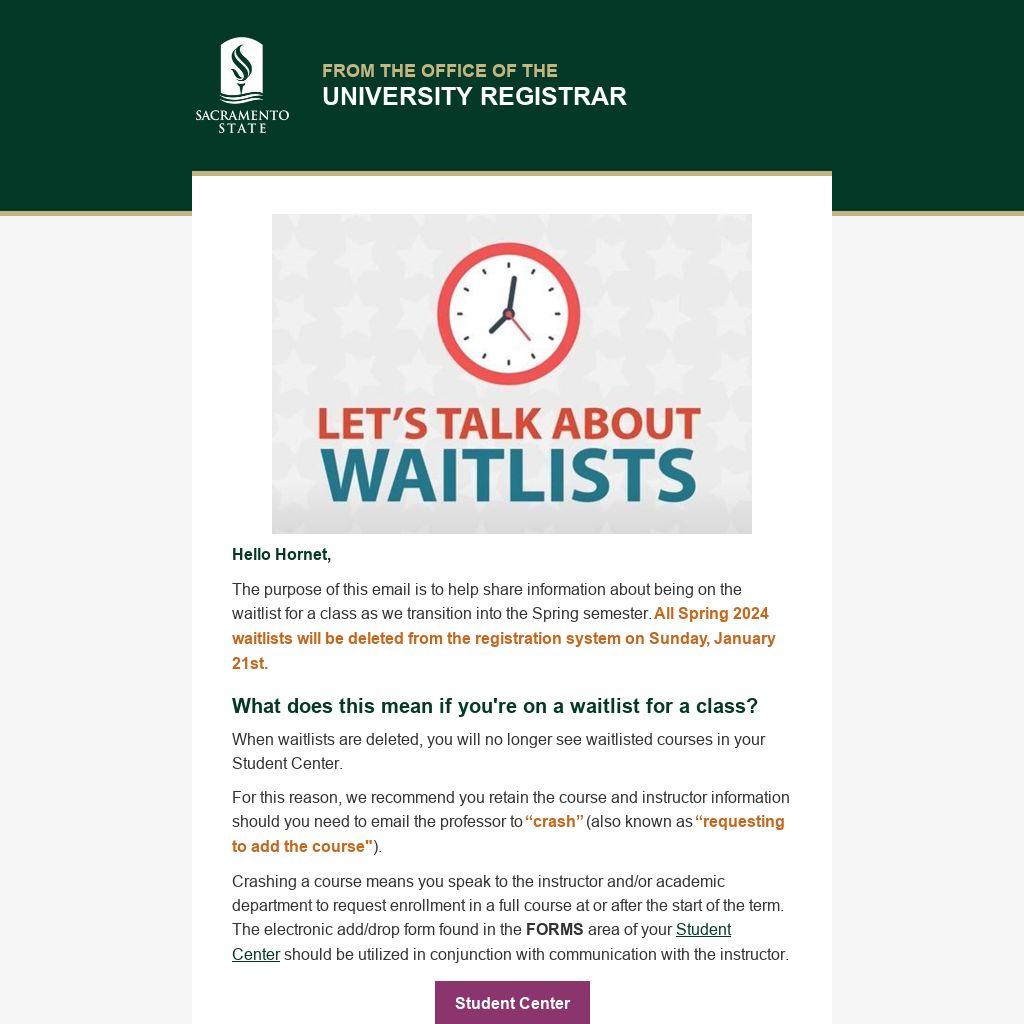 When waitlists are deleted, you will no longer see waitlisted courses in your Student Center.