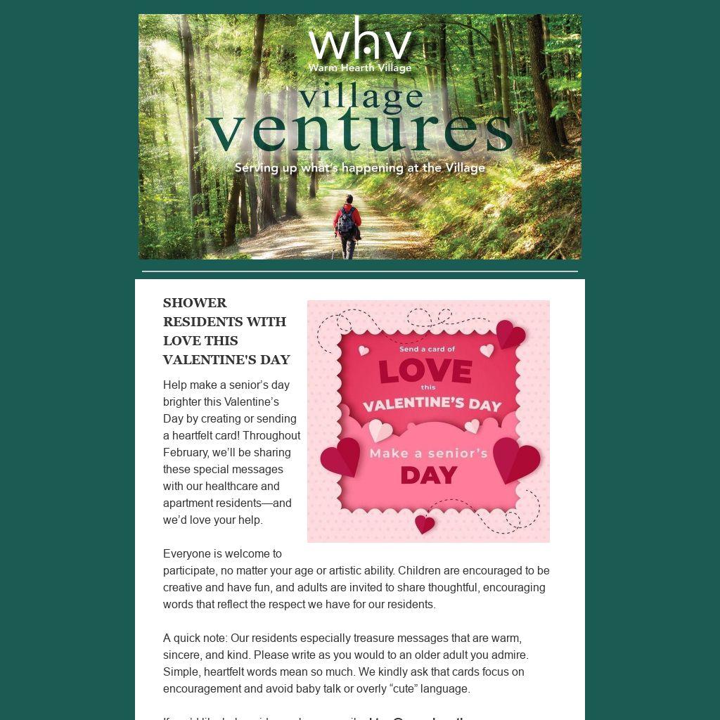Help make a senior’s day brighter this Valentine’s Day by creating or sending a heartfelt card! Throughout February, we’ll be sharing these special messages with our healthcare and apartment residents—and we’d love your help.