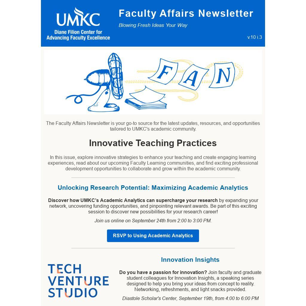 The Faculty Affairs Newsletter is your go-to source for the latest updates, resources, and opportunities tailored to UMKC's academic community.