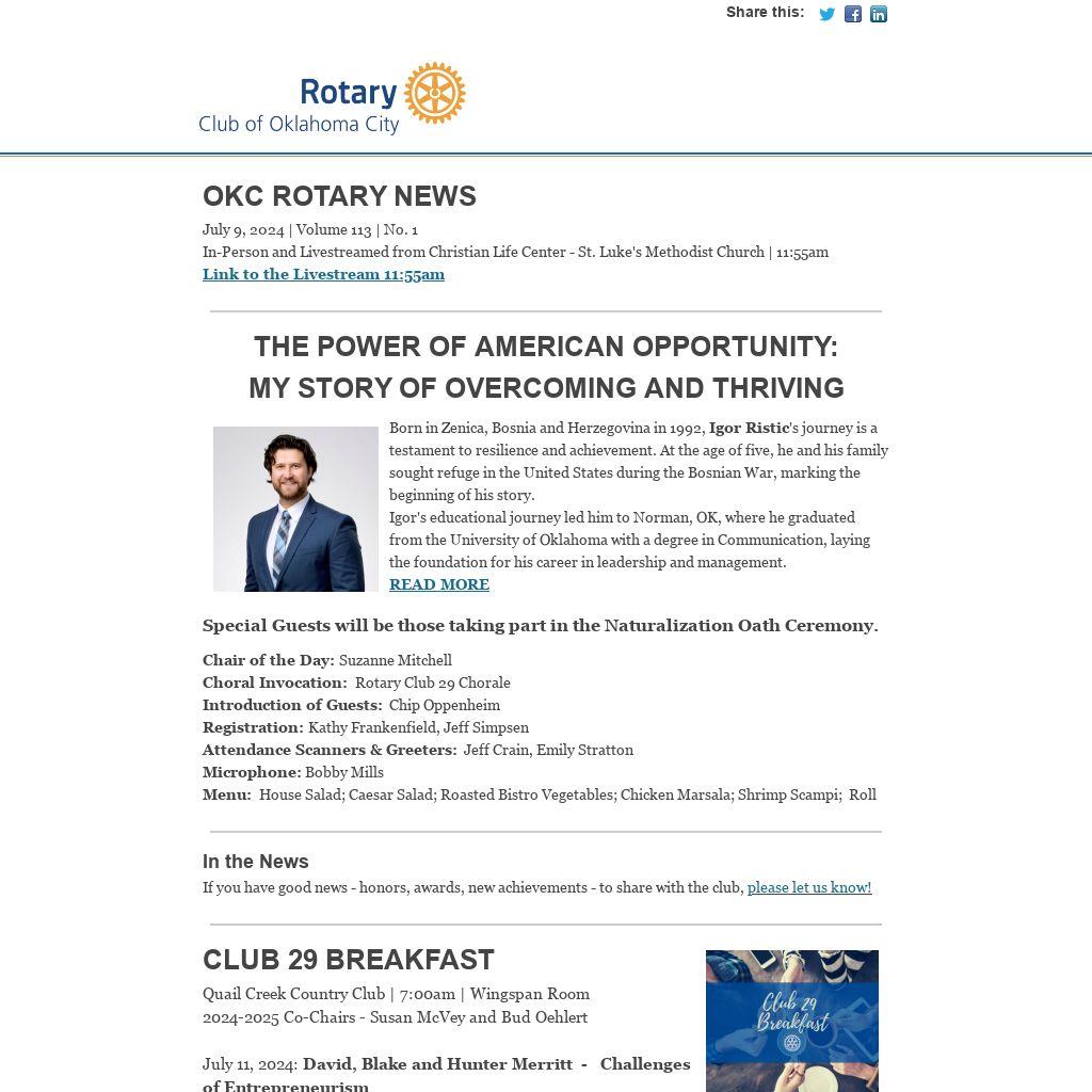 | OKC ROTARY NEWSJuly 9, 2024 | Volume 113 | No. 1