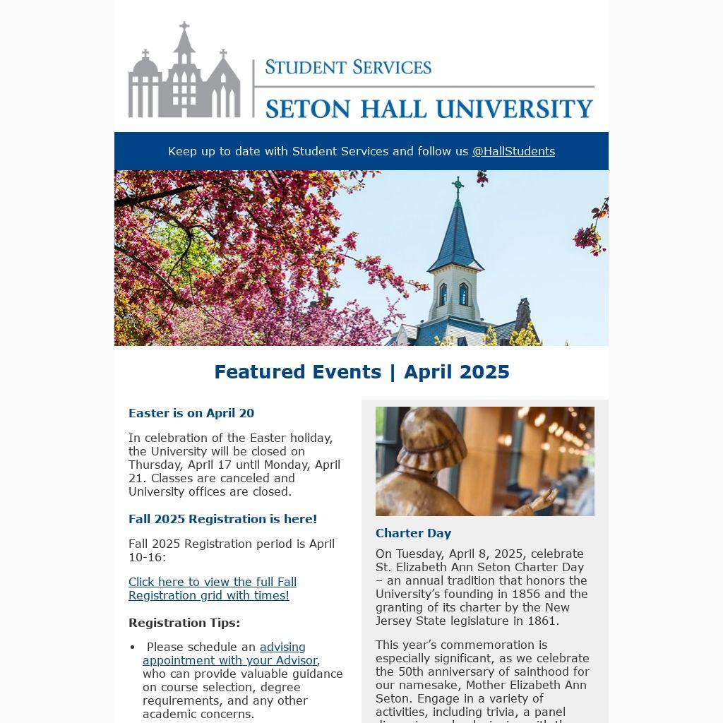 On Tuesday, April 8, 2025, celebrate St. Elizabeth Ann Seton Charter Day – an annual tradition that honors the University’s founding in 1856 and the granting of its charter by the New Jersey State legislature in 1861.