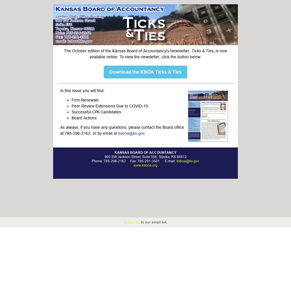 Read the Kansas Board of Accountancy October Edition of Ticks & Ties
