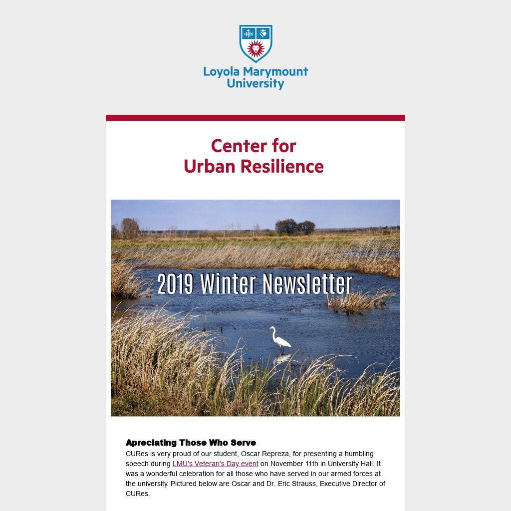 2019-2020 Environmental Lecture SeriesFall 2019 kicked off the third year of our environmental lecture series, which aims to engage the LMU community in the range of environmental research studies and projects taking place on and off campus. On October 14, CURes hosted Swarthmore College's Dr. Mark Wallace for a talk, entitled “When God Was a Bird: Christianity, Animism, and Re-Enchantment of the World", which offered a thought-provoking exploration of Christian roots, evoked ideas of animism and challenged student to see God in all things as a way to promote care for the environment.