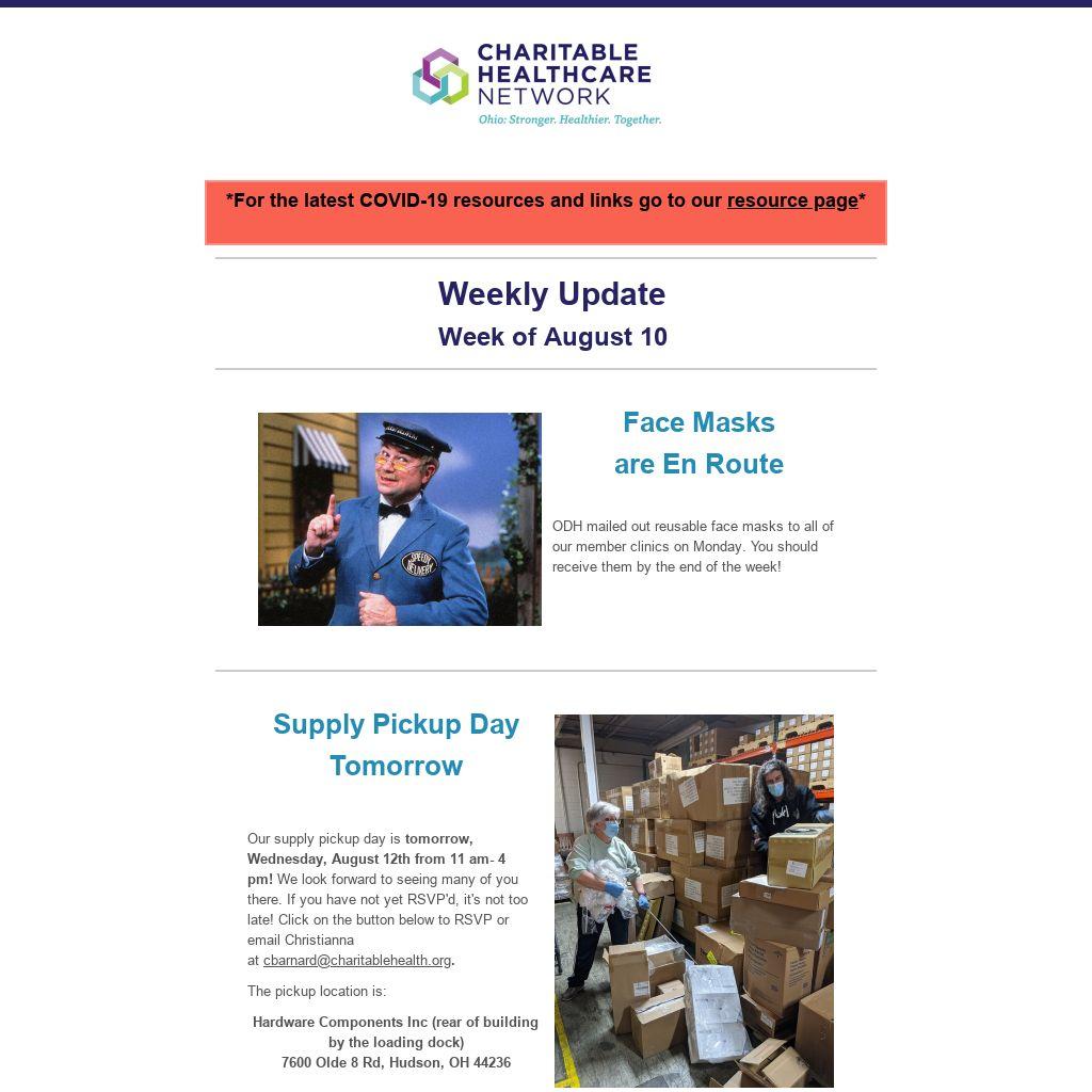 The Charitable Healthcare Network is hosting a bi-weekly virtual discussion group for Ohio's charitable healthcare organizations. Here we will check-in with one another as well as share resources and strategies on our approach to handling the COVID-19 pandemic. Meetings will be held Wednesdays from 11am-12pm. Download the minutes/ recording from this week's meeting below or register to join live!