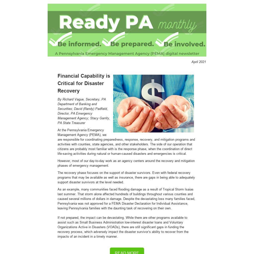 By Richard Vague, Secretary, PA Department of Banking and Securities; David (Randy) Padfield, Director, PA Emergency Management Agency; Stacy Garrity, PA State Treasurer