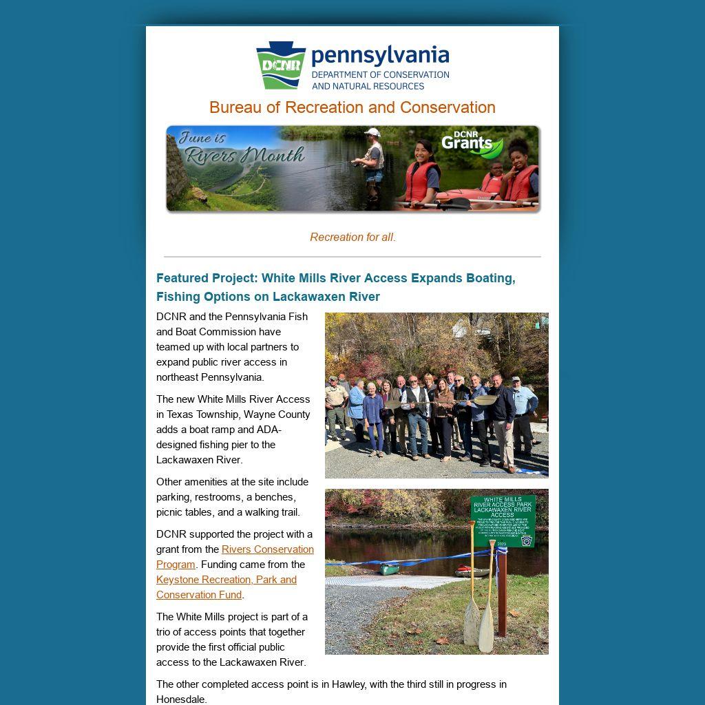 DCNR and the Pennsylvania Fish and Boat Commission have teamed up with local partners to expand public river access in northeast Pennsylvania.