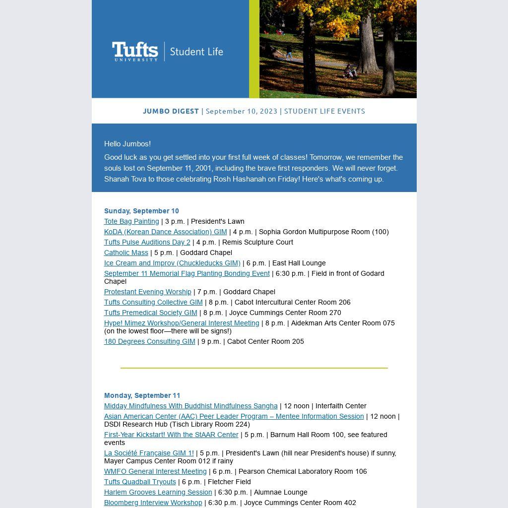 JUMBO DIGEST | September 10, 2023 | STUDENT LIFE EVENTS |