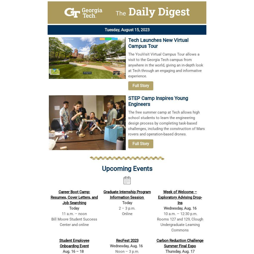 | The YouVisit Virtual Campus Tour allows a visit to the Georgia Tech campus from anywhere in the world, giving an in-depth look at Tech through an engaging and informative experience.