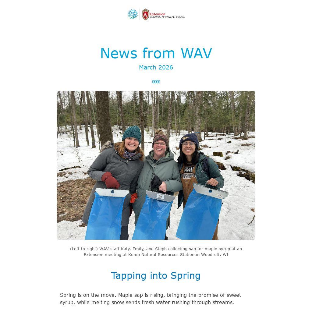 The convention is open to everyone, from water professionals to folks who simply love Wisconsin's waterways. WAV will also have a table at the convention so stop by and meet us in-person!
