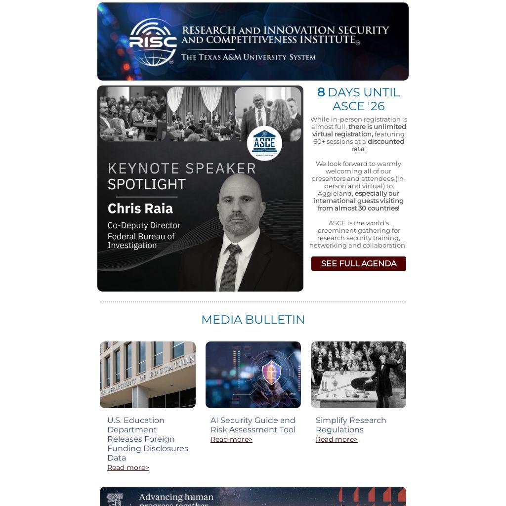 ASCE is the world's preeminent gathering for research security training, networking and collaboration.