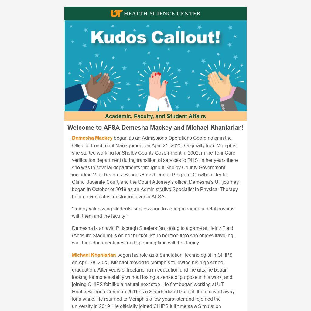 Demesha Mackey began as an Admissions Operations Coordinator in the Office of Enrollment Management on April 21, 2025. Originally from Memphis, she started working for Shelby County Government in 2002, in the TennCare verification department during transition of services to DHS. In her years there she was in several departments throughout Shelby County Government including Vital Records, School-Based Dental Program, Cawthon Dental Clinic, Juvenile Court, and the Count Attorney’s office. Demesha’s UT journey began in October of 2019 as an Administrative Specialist in Physical Therapy, before eventually transferring over to AFSA.
