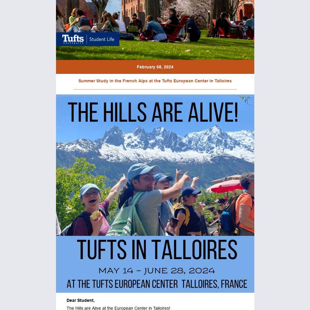 - Tufts in Talloires –– May 14-June 28, 2024