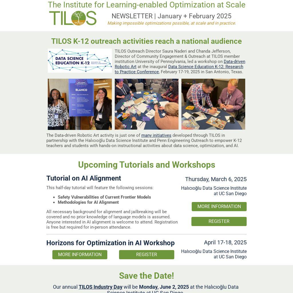 Our annual TILOS Industry Day will be Monday, June 2, 2025 at the Halıcıoğlu Data Science Institute at UC San Diego.