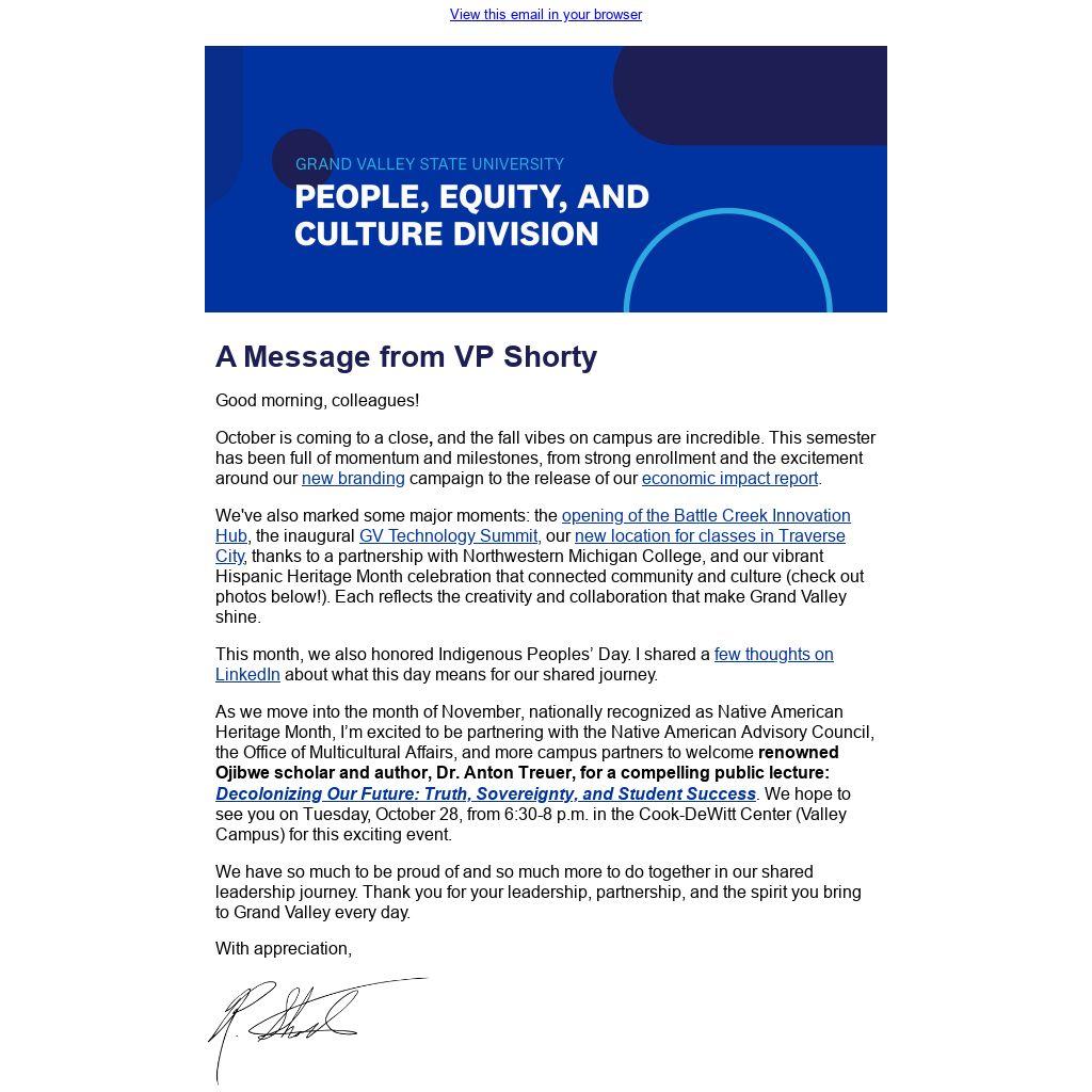 We have so much to be proud of and so much more to do together in our shared leadership journey. Thank you for your leadership, partnership, and the spirit you bring to Grand Valley every day.