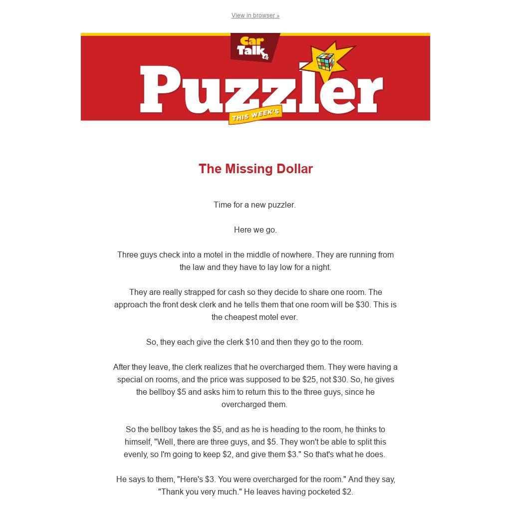 So the bellboy takes the $5, and as he is heading to the room, he thinks to himself, "Well, there are three guys, and $5. They won't be able to split this evenly, so I'm going to keep $2, and give them $3." So that's what he does.