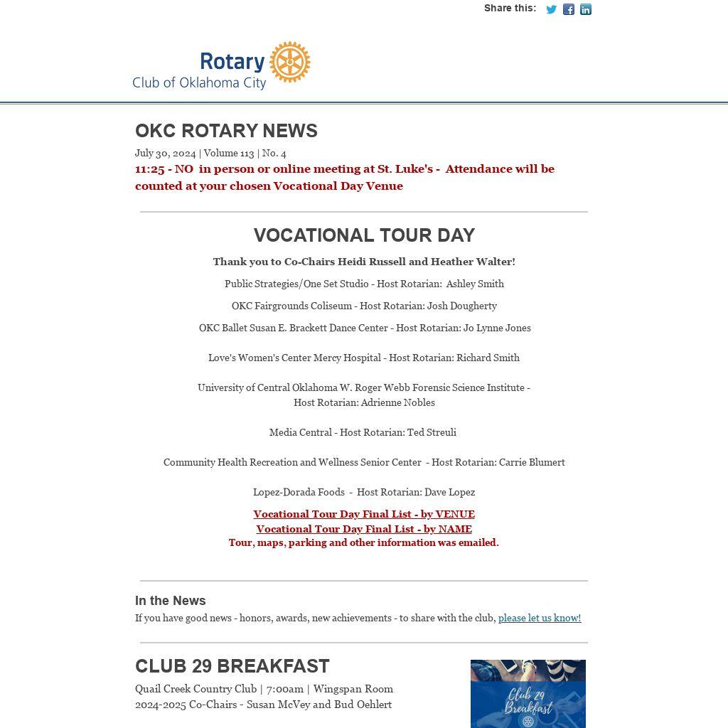 | OKC ROTARY NEWSJuly 30, 2024 | Volume 113 | No. 4