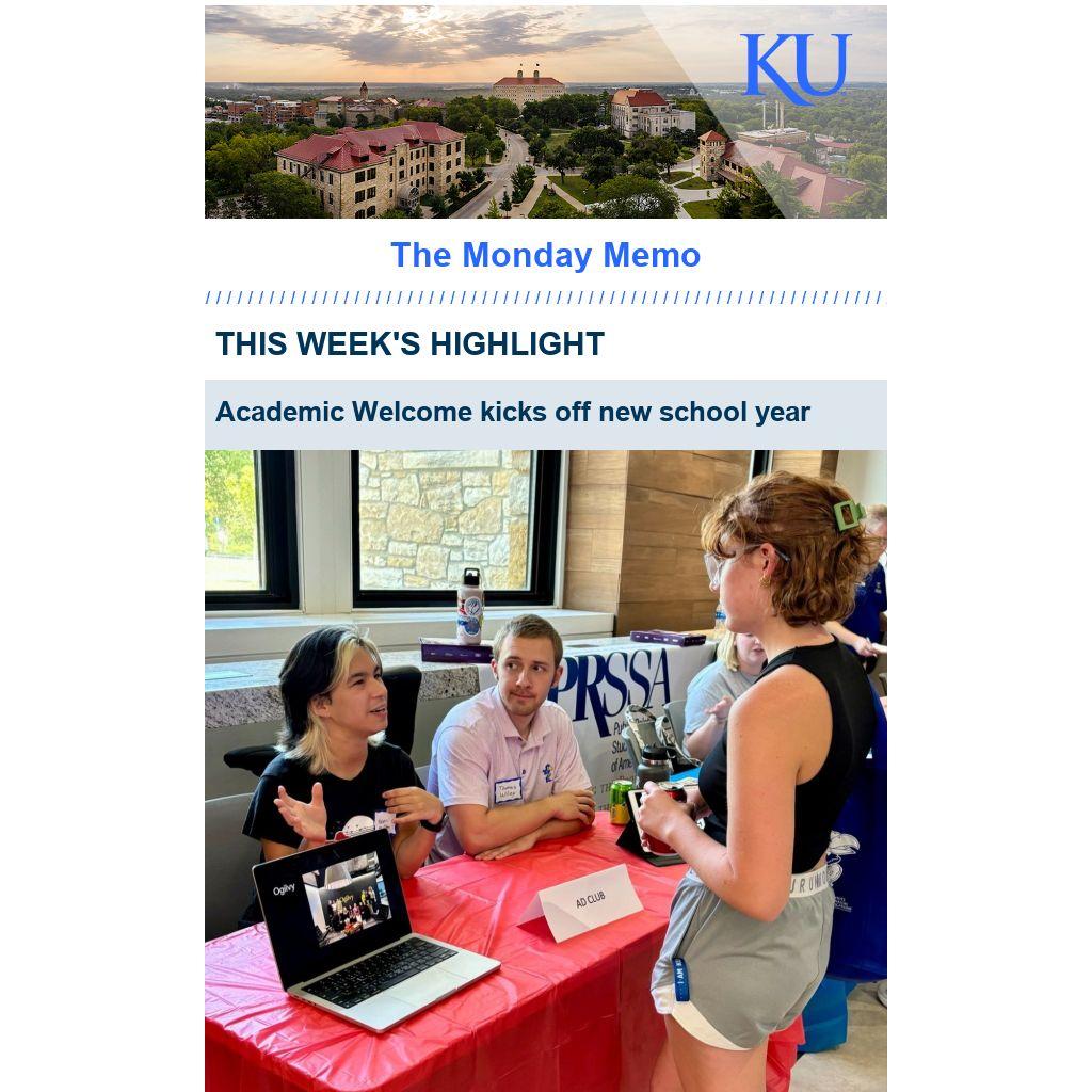We really enjoyed meeting new freshmen and transfer students at the JMC Academic Welcome on Sunday, Aug. 25. We hope you made a connection with at least one professor, staff member or fellow JMC student. If you missed the event, or if you want to get in touch with any of the campus media organizations, student clubs, or JMC faculty and staff, please let us know. You can visit the Dean’s office in 200 Stauffer-Flint Hall, stop by our Student Services office in 117 Stauffer-Flint, or email us at jschool@ku.edu. We want you to have a fantastic start to your first semester at KU, so let us know how we can help.