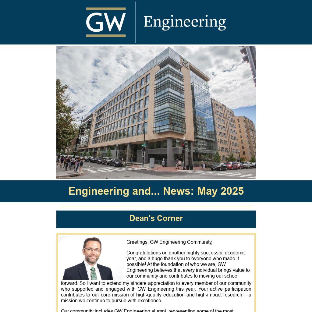 forward. So I want to extend my sincere appreciation to every member of our community who supported and engaged with GW Engineering this year. Your active participation contributes to our core mission of high-quality education and high-impact research – a mission we continue to pursue with excellence.