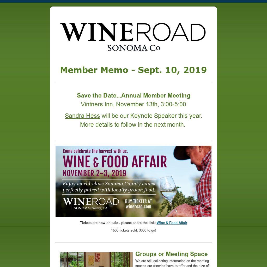 You should have just received (in the mail) a table tent for your tasting room, from our newest Wine Road partner,