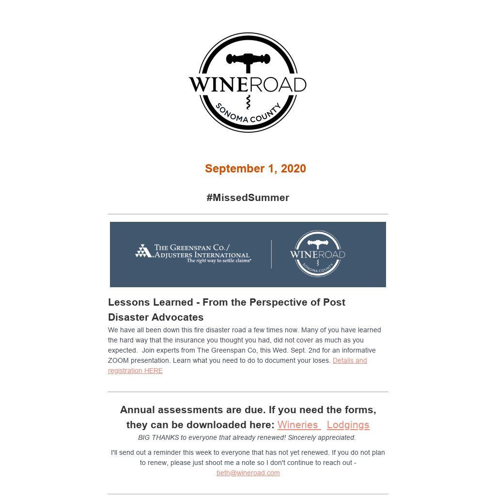 Wine Road will buy the exact number of bottles that were ordered, we will pay as we place the order. Wineries will need to deliver wine to us on the specified date (Oct. 28-29).