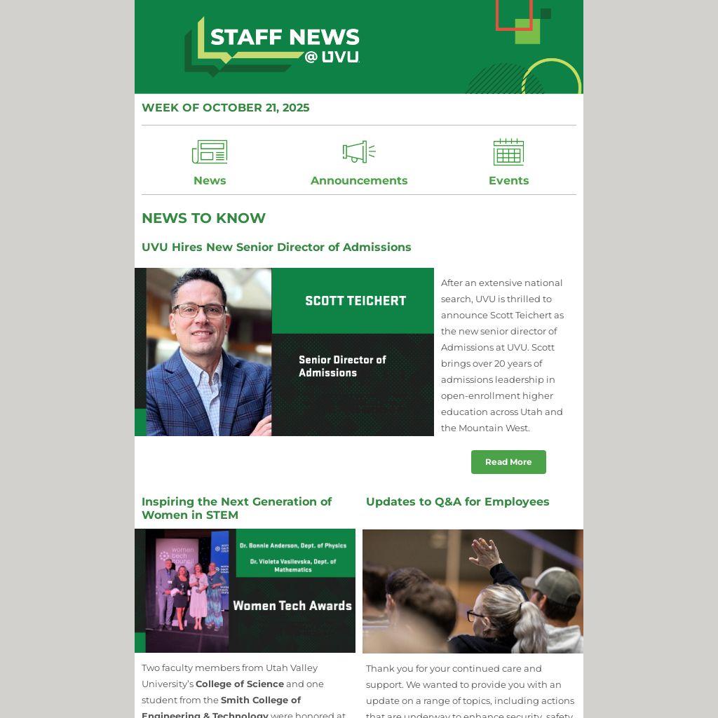 You are receiving this email because you are a staff member at Utah Valley University.