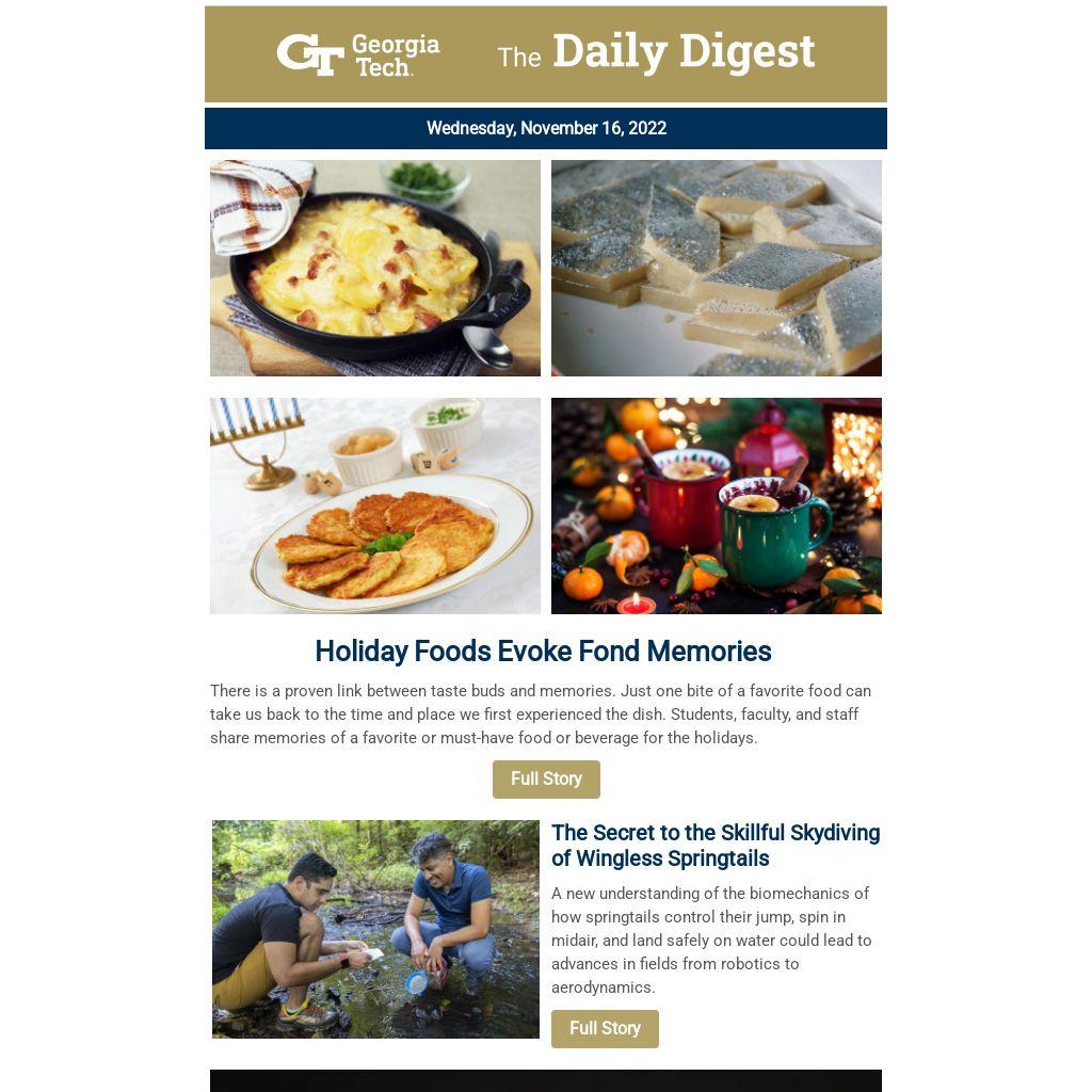 There is a proven link between taste buds and memories. Just one bite of a favorite food can take us back to the time and place we first experienced the dish. Students, faculty, and staff share memories of a favorite or must-have food or beverage for the holidays.