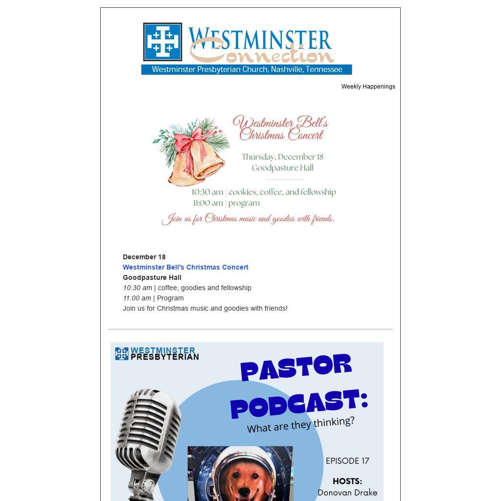 Westminster Cafe will be closed the weeks of Christmas and New Year's, Dec. 22-Jan.2.