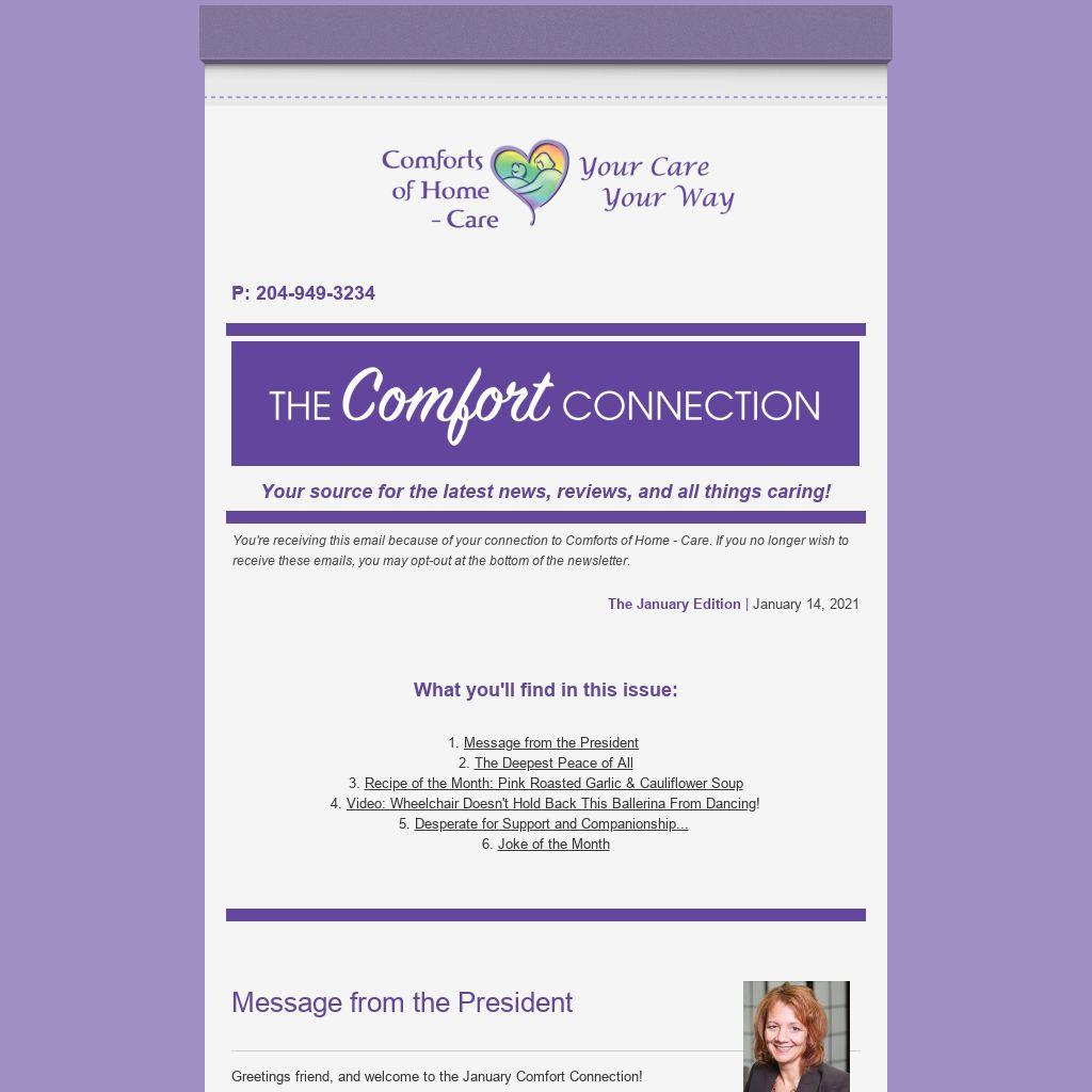 Greetings friend, and welcome to the January Comfort Connection!