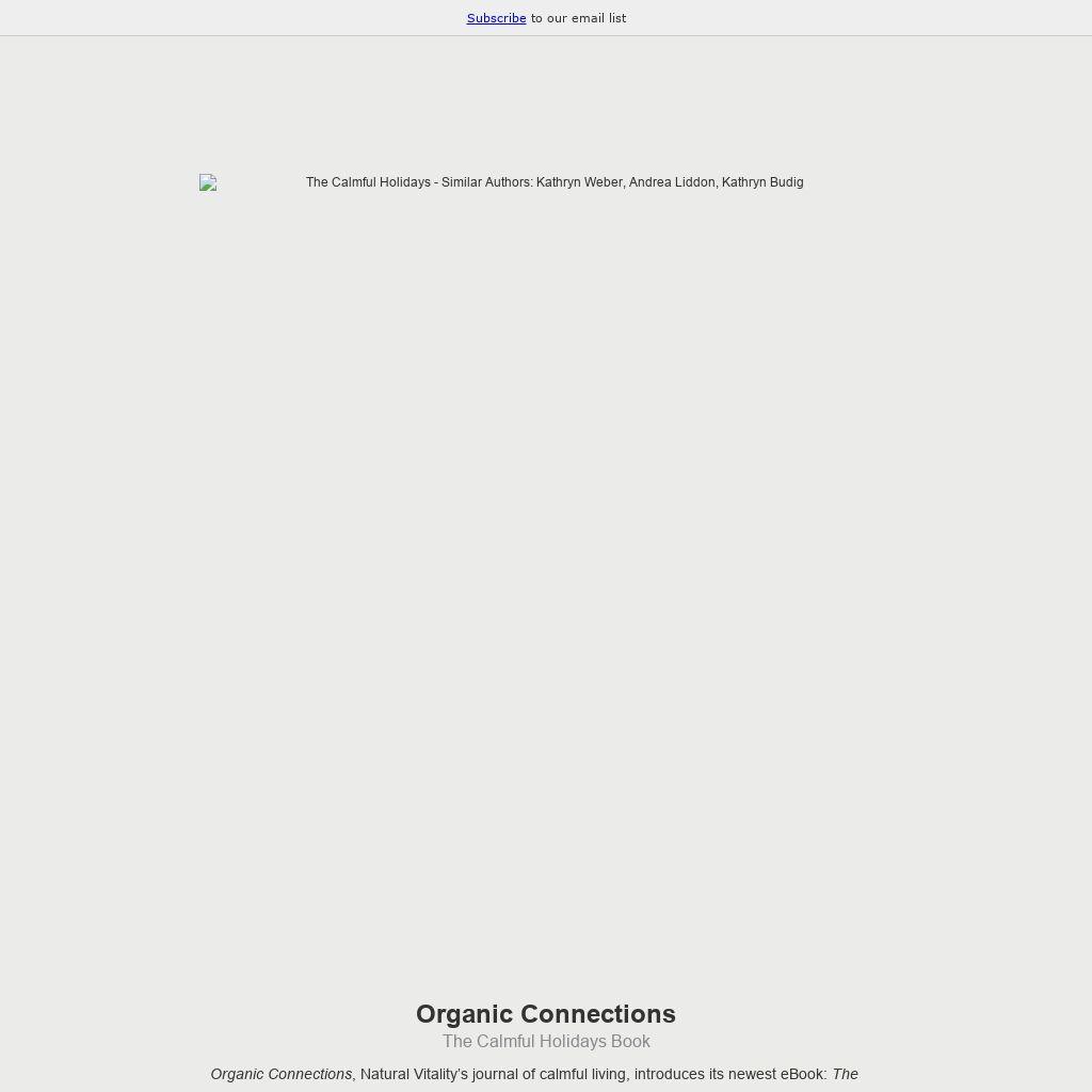 Organic Connections, Natural Vitality’s journal of calmful living, introduces its newest eBook: The Calmful Holidays Book. Inside, you’ll find gorgeous images, recipes, and lots of calmful tips and expert advice. And the best part about this book? You won’t find the expected. Why should you, when these days anything goes for the holidays? Old traditions can blend with new, or you can simply reinvent what the holidays mean to you. In this eBook, you’ll discover new ways to celebrate or just relax around the holidays, like feng shui holiday decorating and a music list that is far from the classics but still brings a warm vibe to any room.