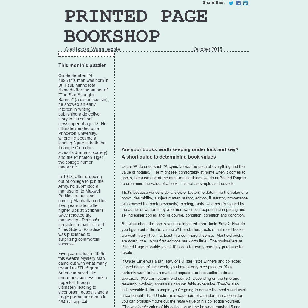 Oscar Wilde once said, "A cynic knows the price of everything and the value of nothing." He might feel comfortably at home when it comes to books, because one of the most routine things we do at Printed Page is to determine the value of a book. It's not as simple as it sounds.