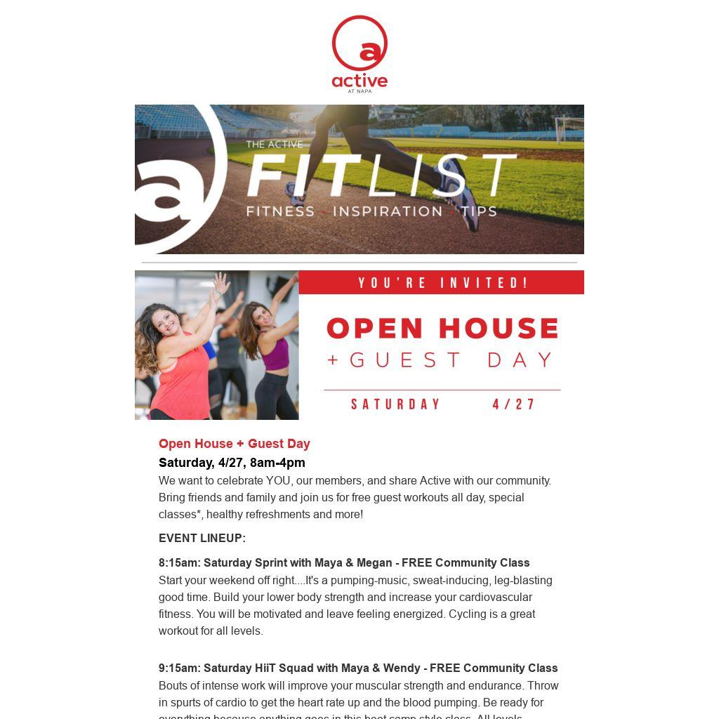 We want to celebrate YOU, our members, and share Active with our community. Bring friends and family and join us for free guest workouts all day, special classes*, healthy refreshments and more!