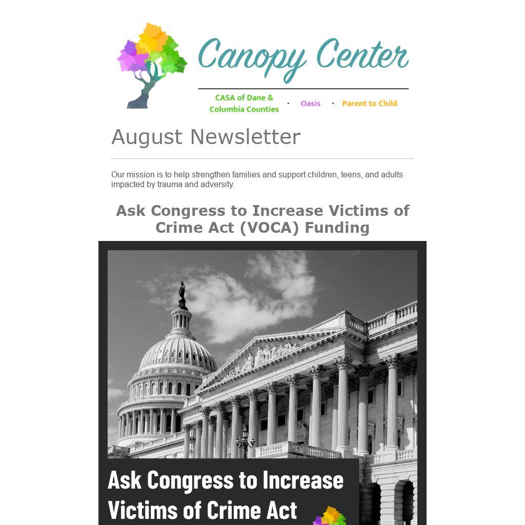Thank you for your support of Canopy Center and other organizations like ours that serve victims are greatly impacted by VOCA funding.