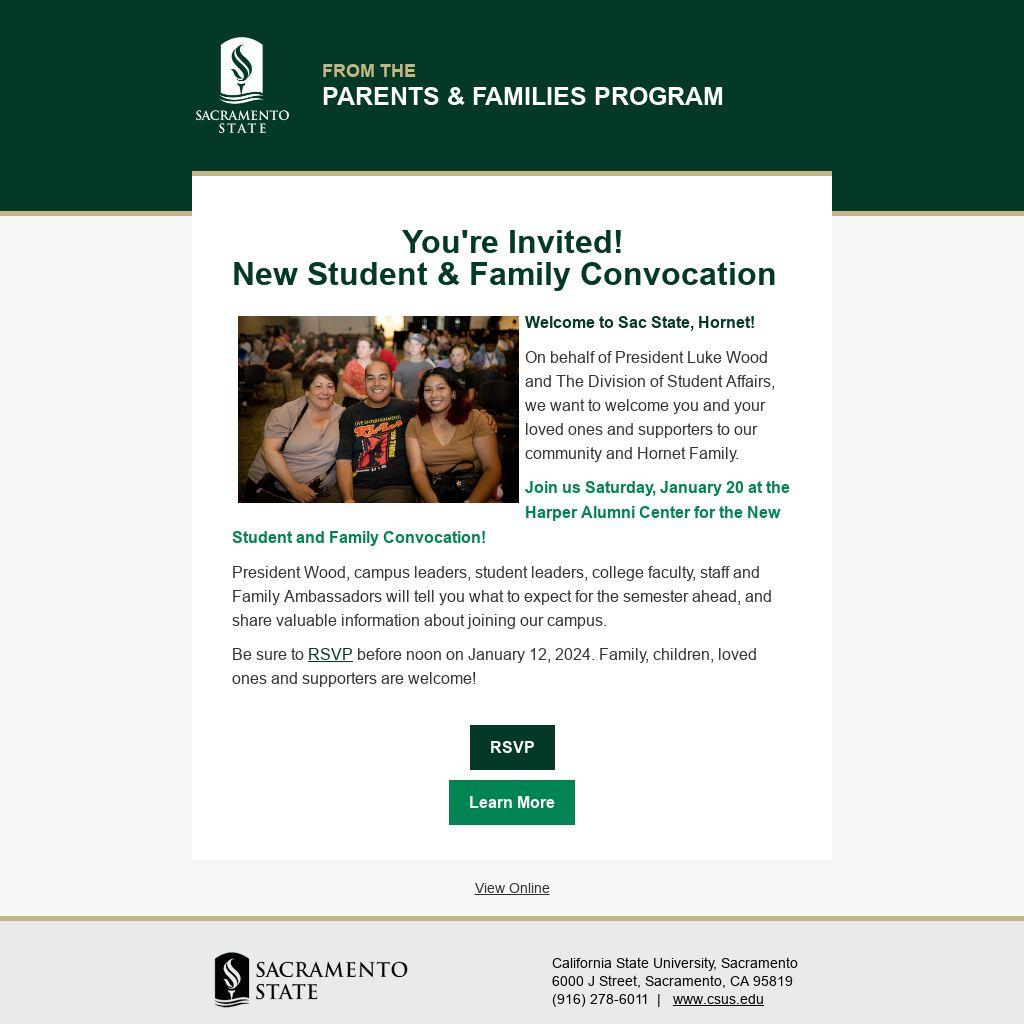 On behalf of President Luke Wood and The Division of Student Affairs, we want to welcome you and your loved ones and supporters to our community and Hornet Family.