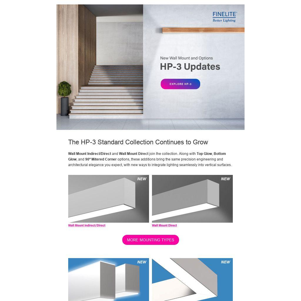 Wall Mount Indirect/Direct and Wall Mount Direct join the collection. Along with Top Glow, Bottom Glow, and 90º Mitered Corner options, these additions bring the same precision engineering and architectural elegance you expect, with new ways to integrate lighting seamlessly into vertical surfaces.