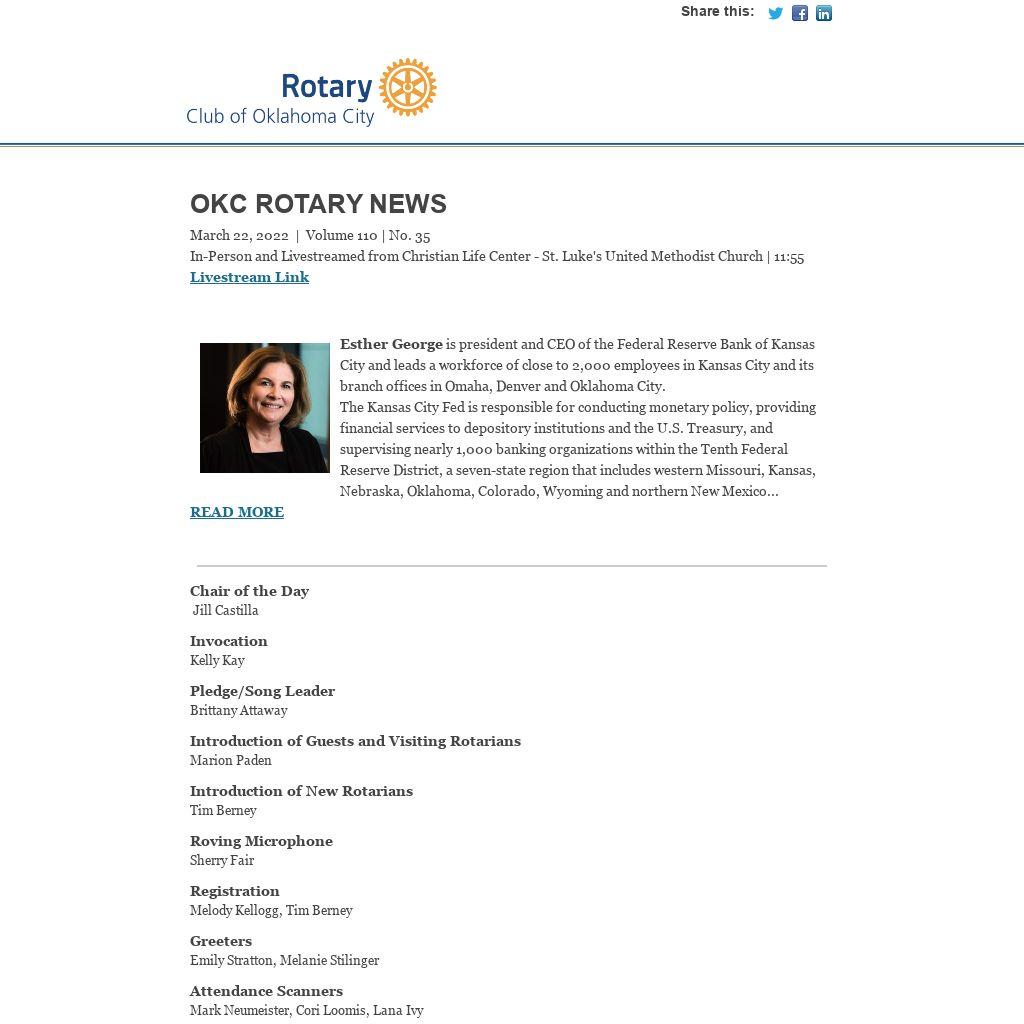 OKC Rotary NewsMarch 22, 2022 | Volume 110 | No. 35