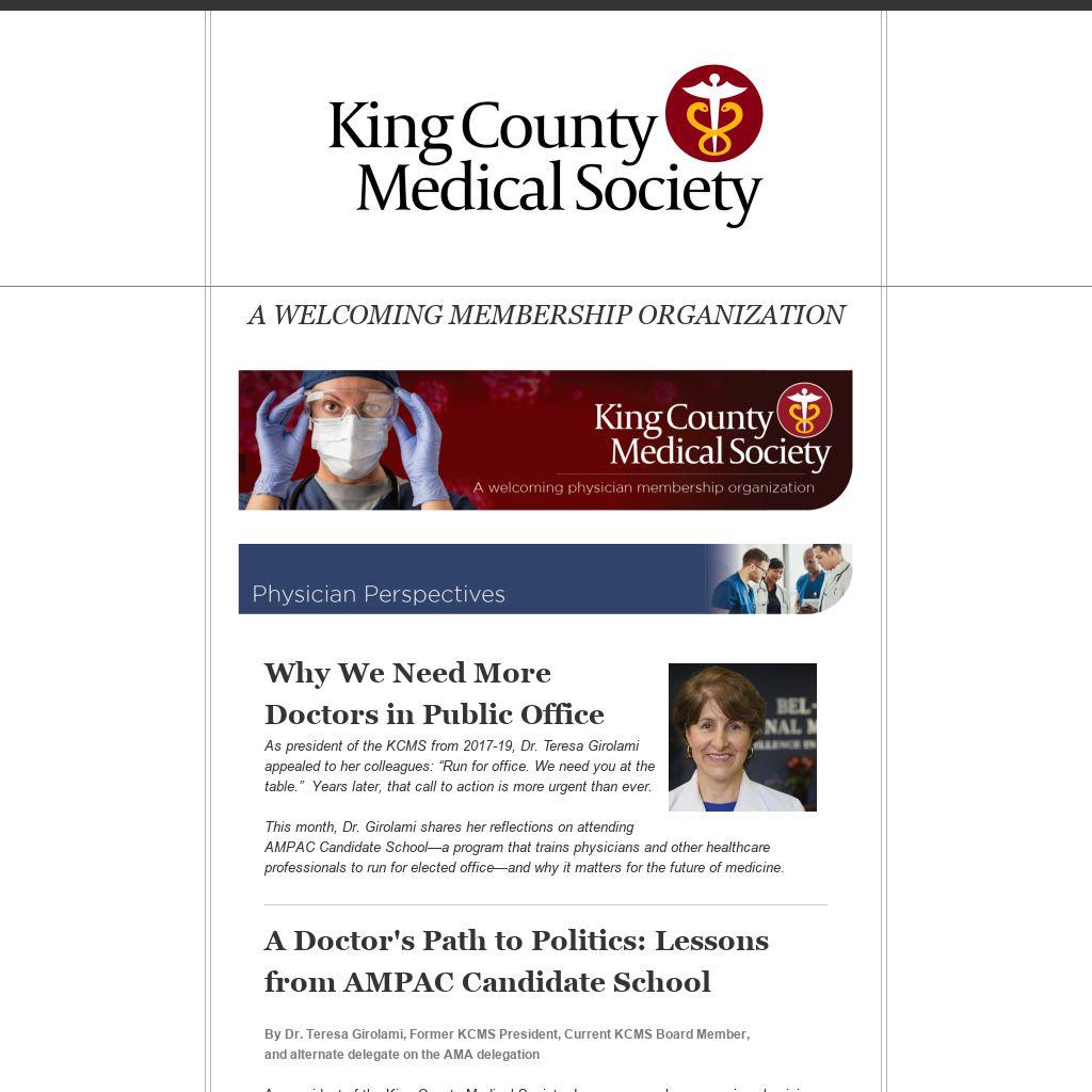 As president of the King County Medical Society, I gave a speech encouraging physicians to run for public office. That conviction came from personal experience. After spending time in Olympia, I realized that no physicians were serving as elected officials in Washington State at the time.