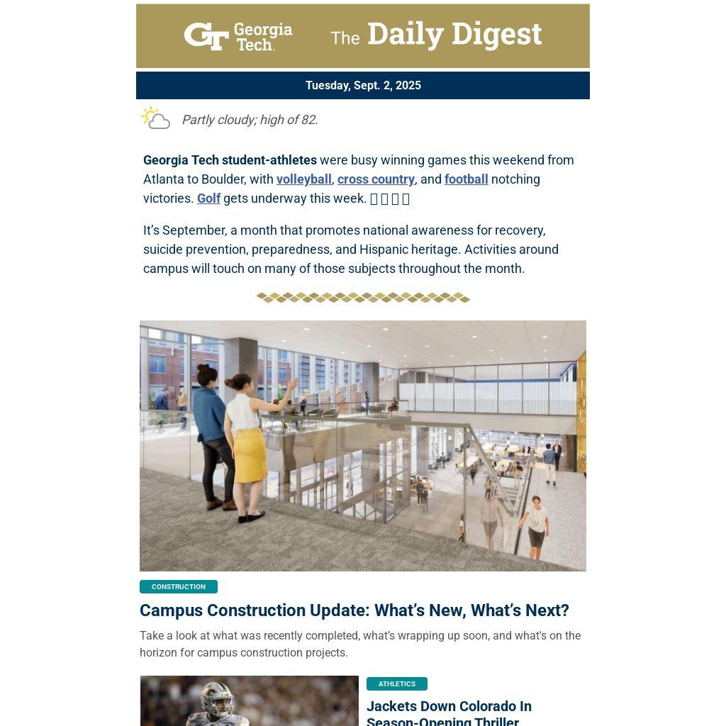 Georgia Tech student-athletes were busy winning games this weekend from Atlanta to Boulder, with volleyball, cross country, and football notching victories. Golf gets underway this week. 🏐 🏃 🏈 ⛳