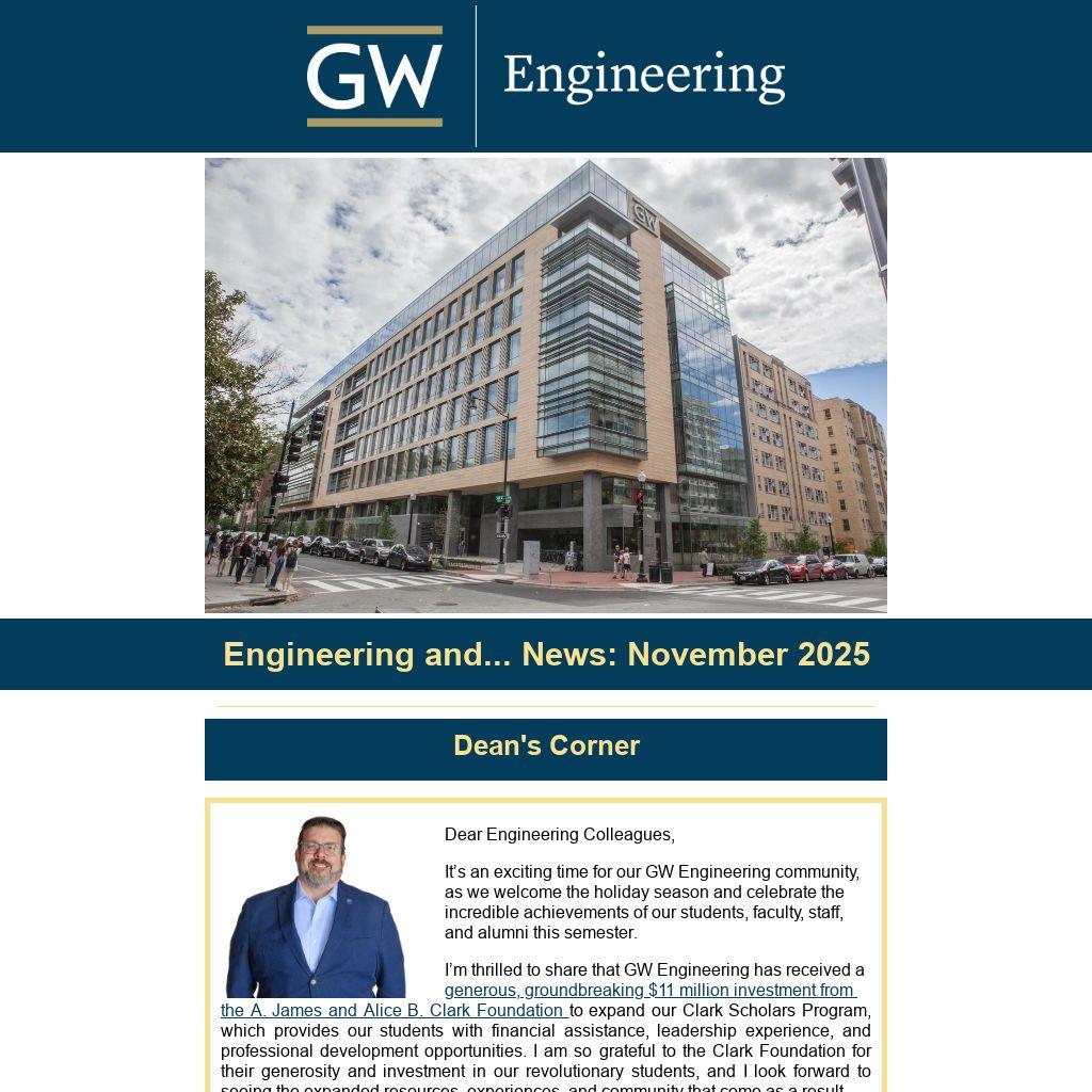 It’s an exciting time for our GW Engineering community, as we welcome the holiday season and celebrate the incredible achievements of our students, faculty, staff, and alumni this semester.
