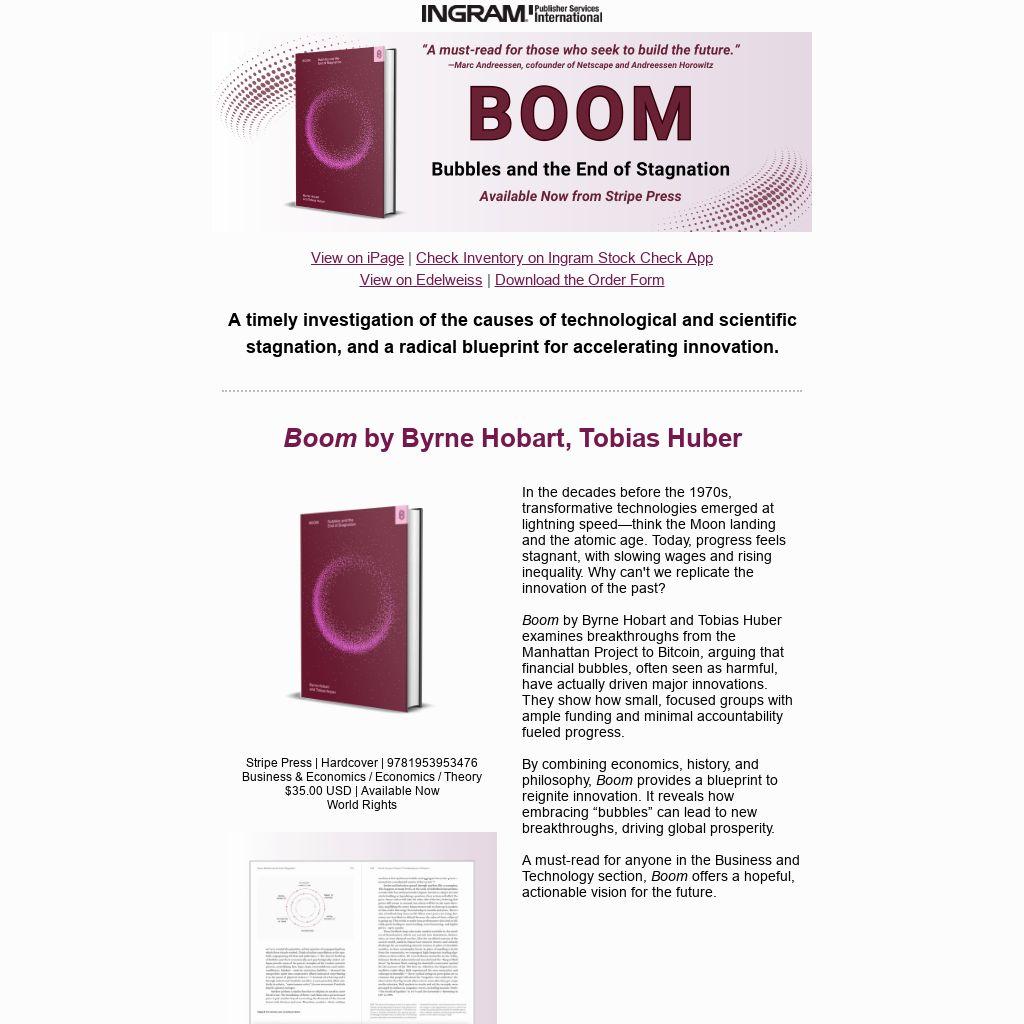 By combining economics, history, and philosophy, Boom provides a blueprint to reignite innovation. It reveals how embracing “bubbles” can lead to new breakthroughs, driving global prosperity.