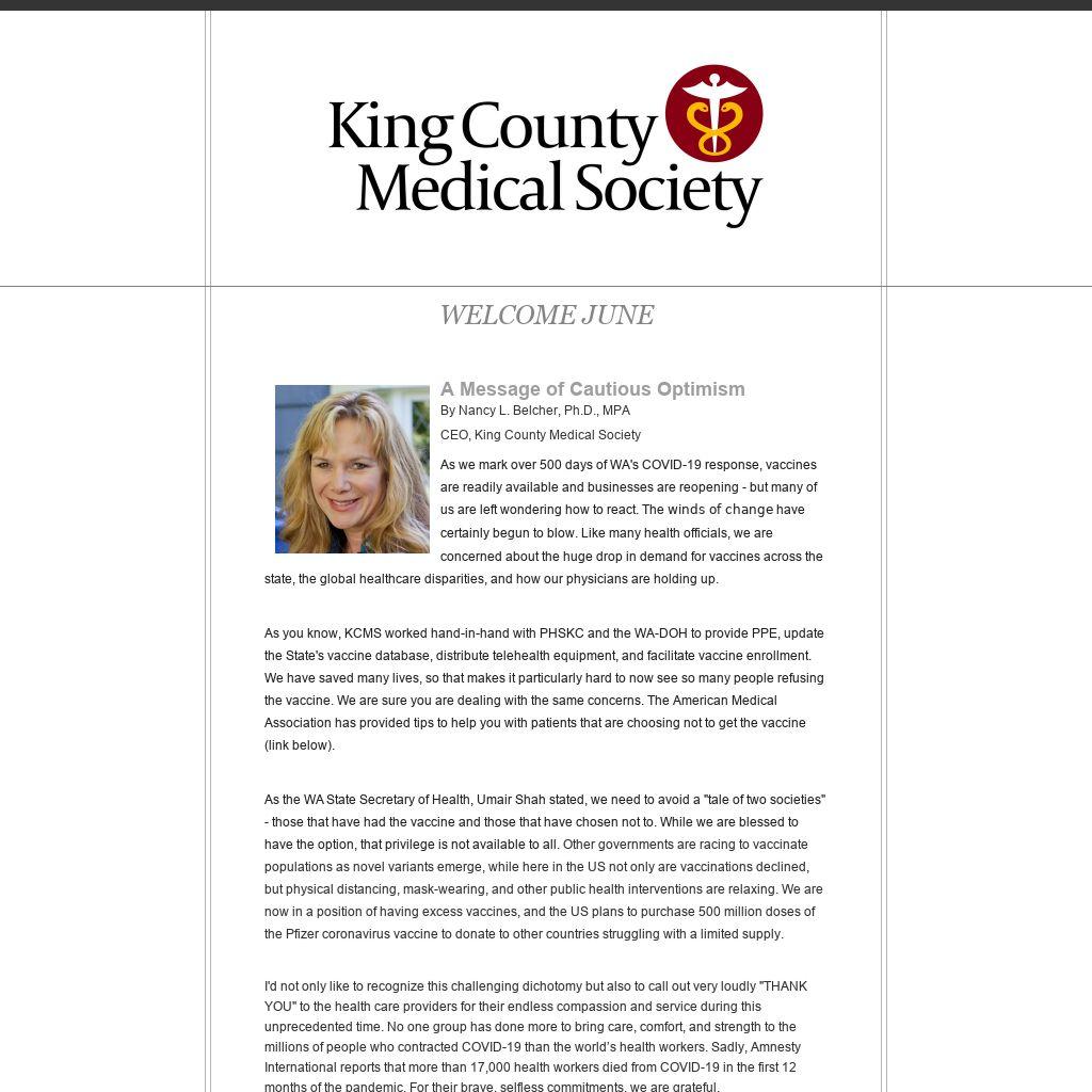 As you know, KCMS worked hand-in-hand with PHSKC and the WA-DOH to provide PPE, update the State's vaccine database, distribute telehealth equipment, and facilitate vaccine enrollment. We have saved many lives, so that makes it particularly hard to now see so many people refusing the vaccine. We are sure you are dealing with the same concerns. The American Medical Association has provided tips to help you with patients that are choosing not to get the vaccine (link below).