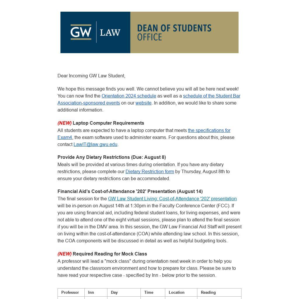 Dear Incoming GW Law Student,