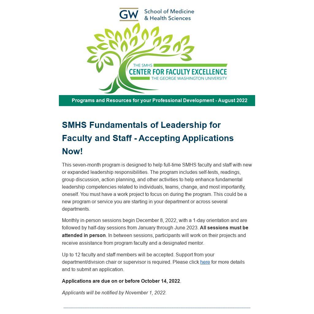 SMHS Fundamentals of Leadership for Faculty and Staff - Accepting Applications Now!
