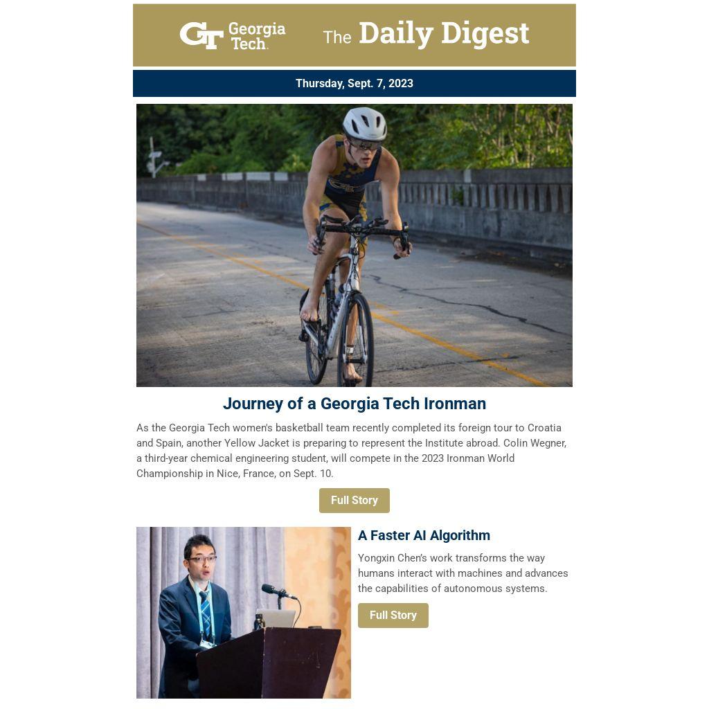 As the Georgia Tech women's basketball team recently completed its foreign tour to Croatia and Spain, another Yellow Jacket is preparing to represent the Institute abroad. Colin Wegner, a third-year chemical engineering student, will compete in the 2023 Ironman World Championship in Nice, France, on Sept. 10.