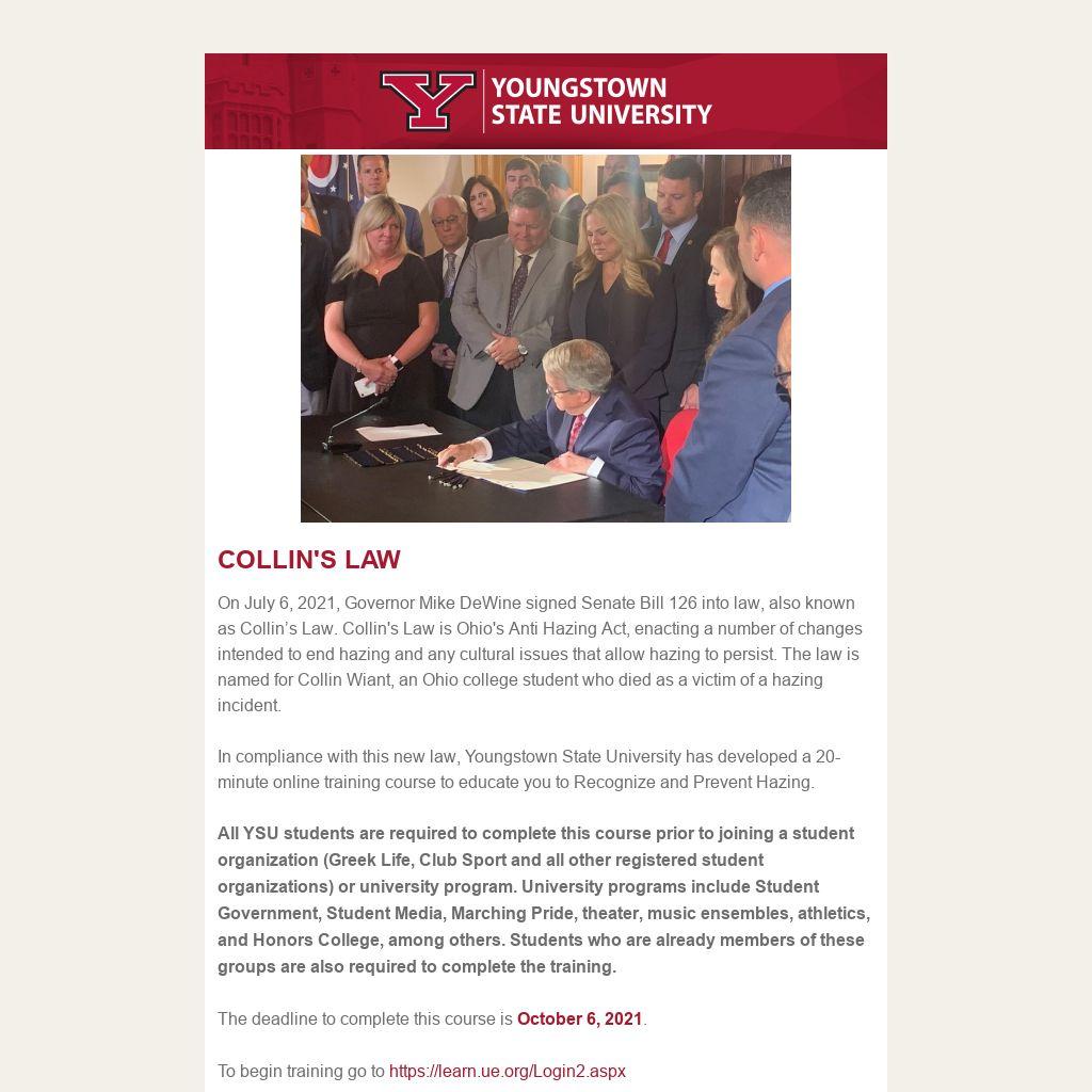 Requires staff and volunteers at colleges and universities to undergo training on hazing awareness and prevention.