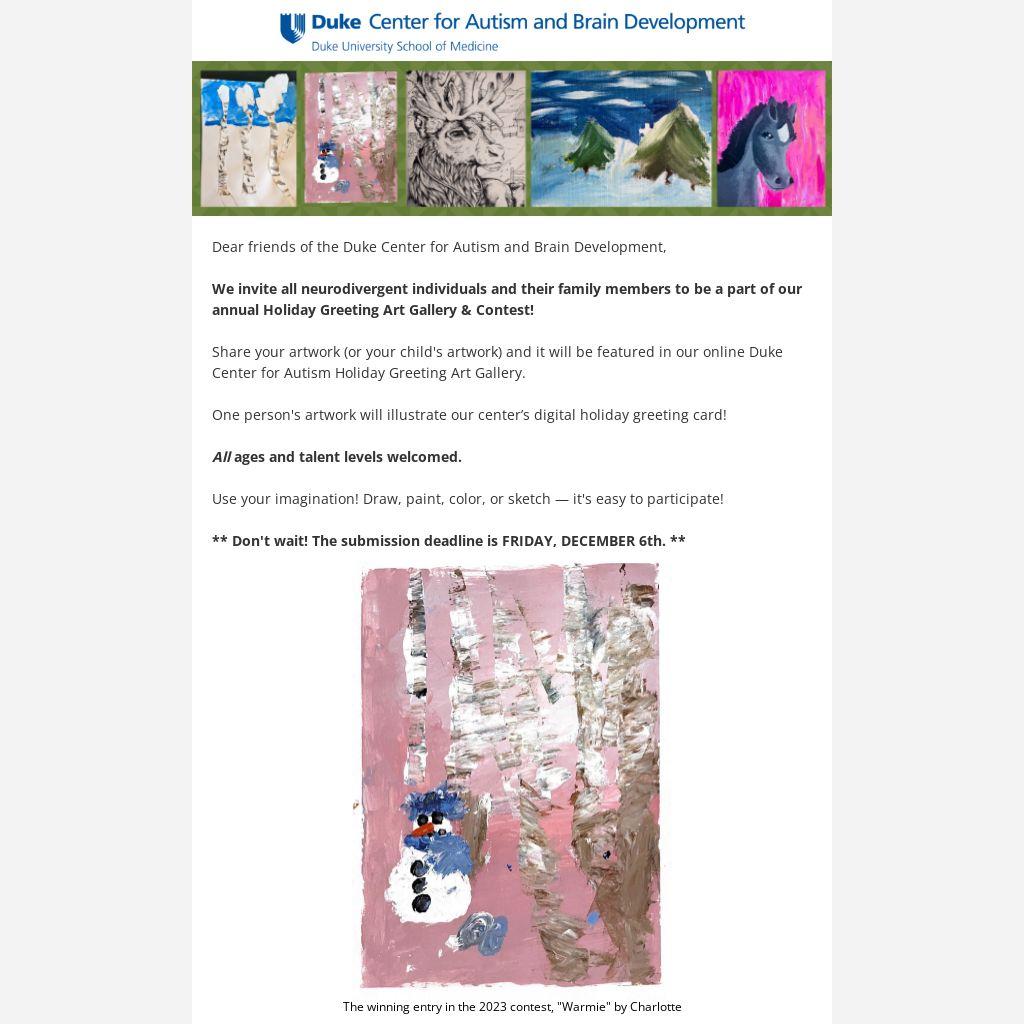 Questions? Contact autismcentercomms@duke.edu.