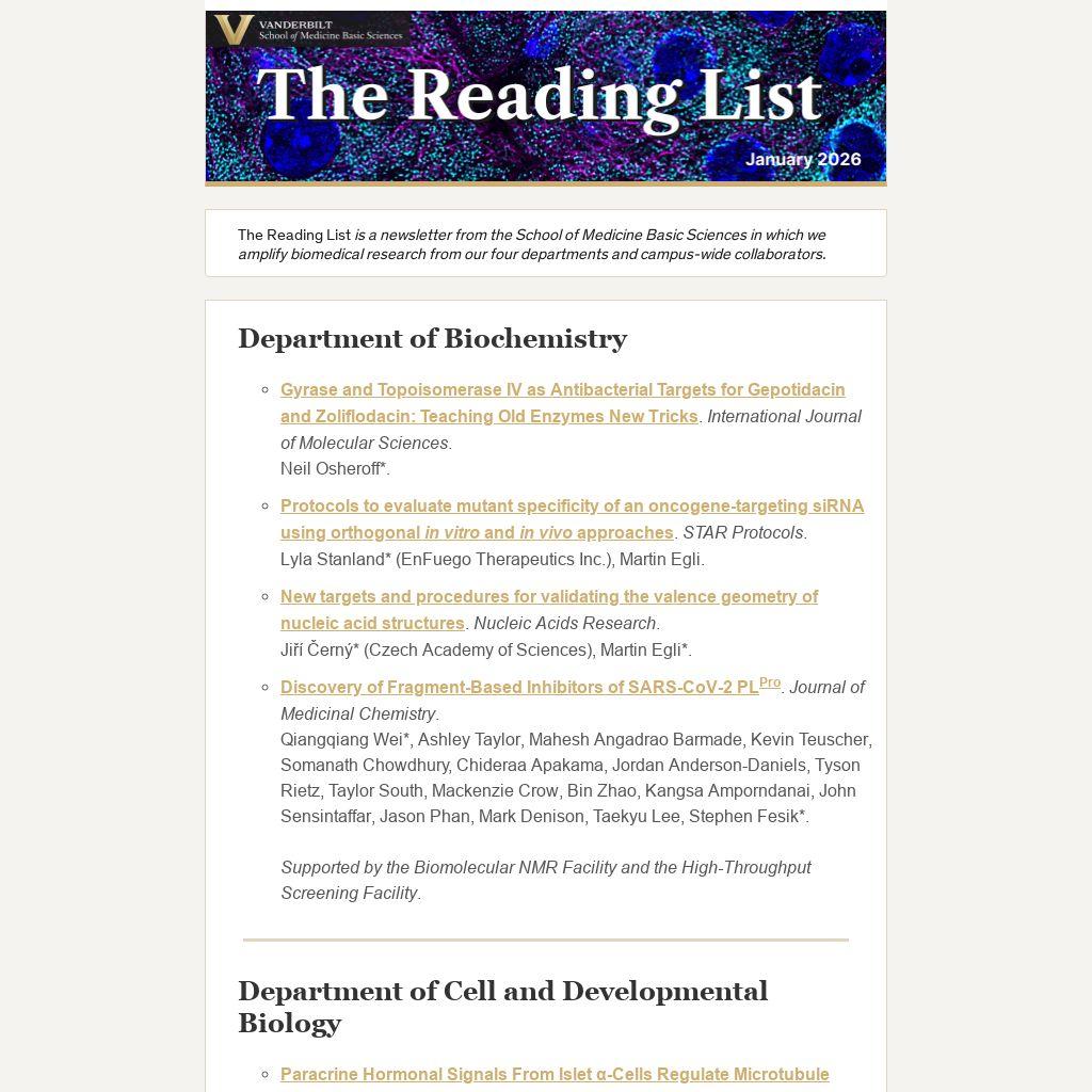 The Reading List is a newsletter from the School of Medicine Basic Sciences in which we amplify biomedical research from our four departments and campus-wide collaborators.